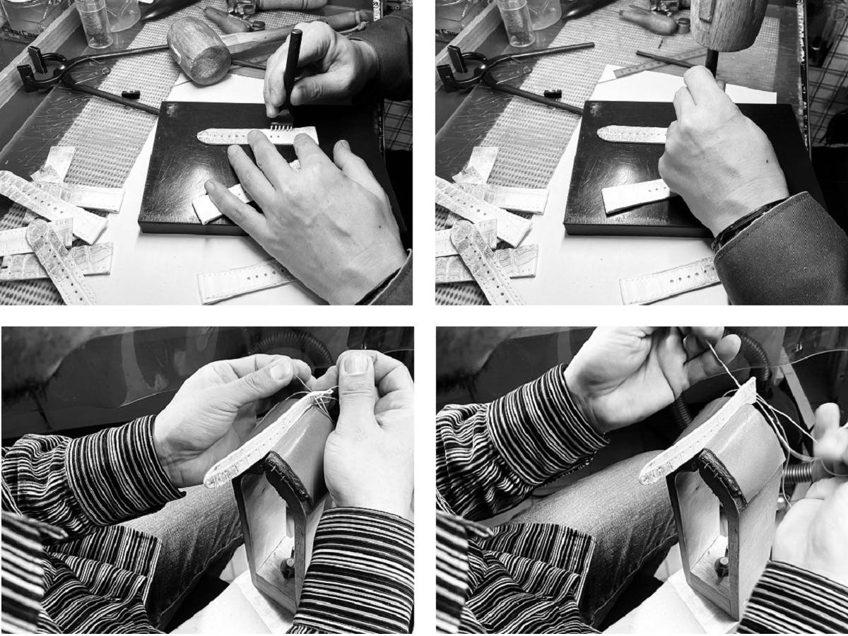 手縫いによって完成したバンドは、ミシン縫いに比べて丈夫さが違います。