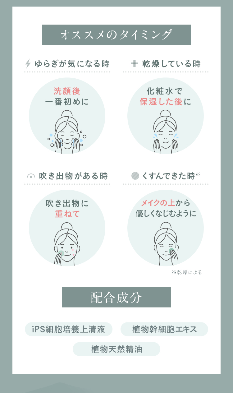 実際に使ってみると、まるで生まれたての赤ちゃん肌に触っているような、今まで感じたことのない質感に驚きました。今見えている部分の肌だけでなく、これからの部分までケアできている感覚が、次世代のスキンケアっていう感じがして、それからやみつきに。